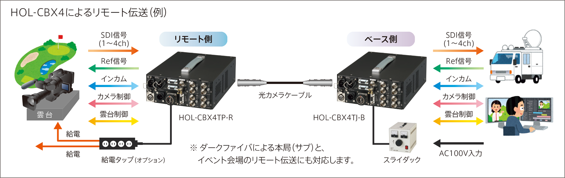 - 1SDI を最大18chまで光多重し、光カメラケーブルを介して光伝送