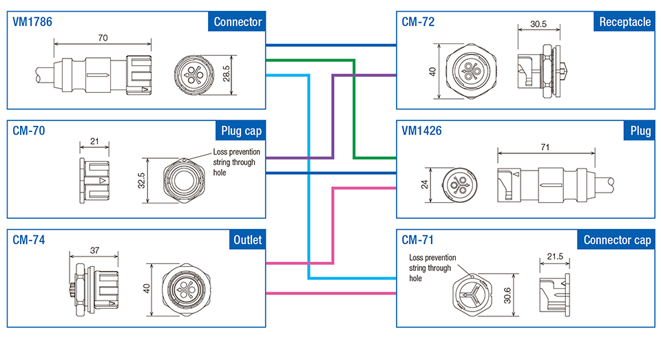 This connector provides IP68 performance when connected. Putting a dedicated cap on when not in use maintains waterproof performance.